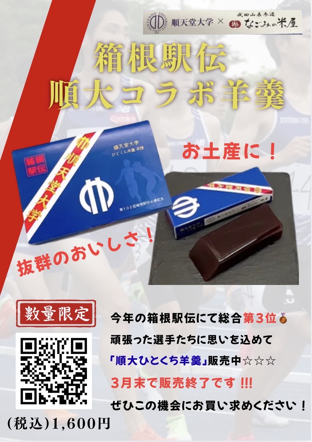 箱根駅伝順大コラボ羊羹 販売終了間近!